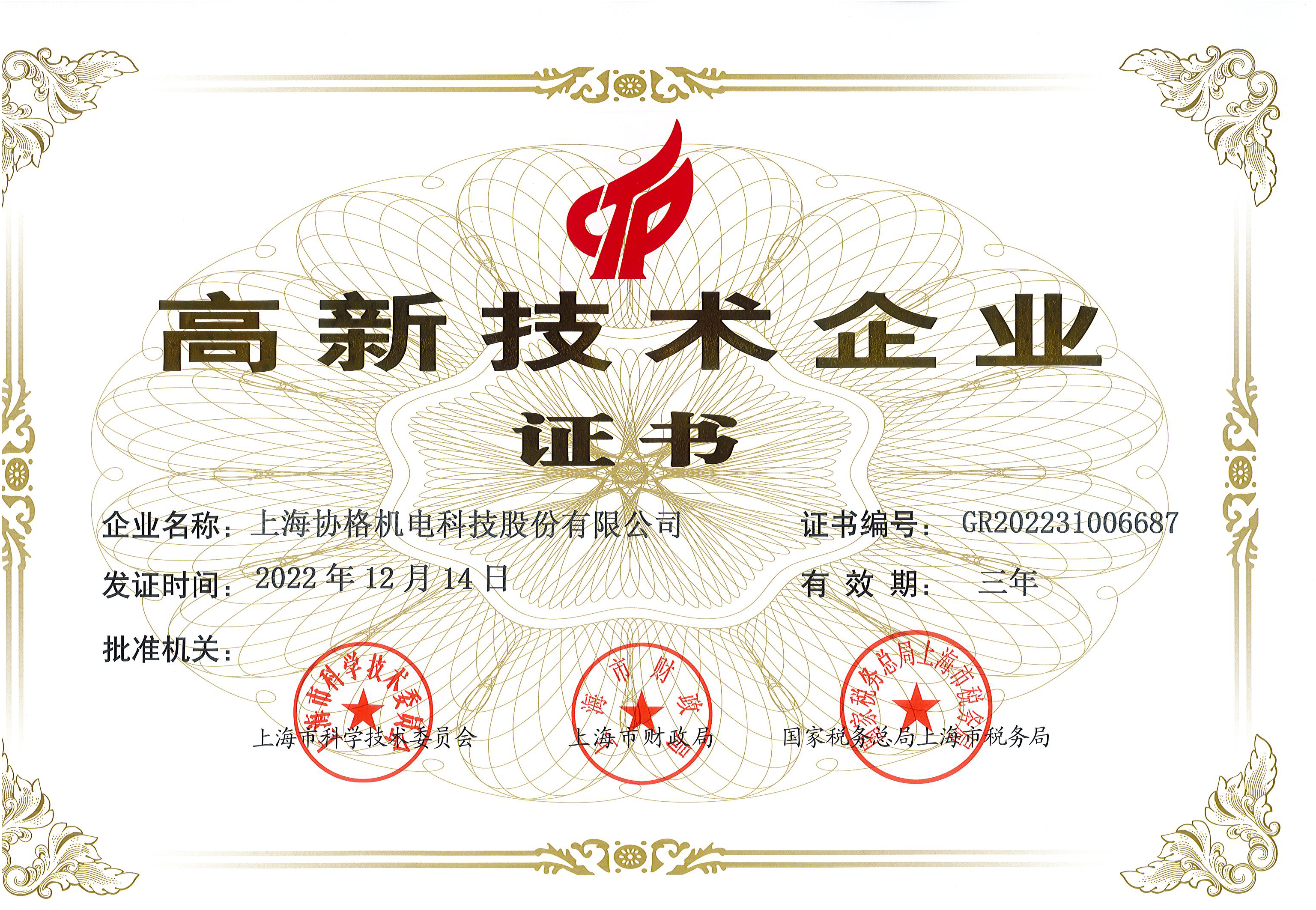 XieGe Honorary Certificate